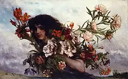 Cella Thoma came from a family of farmers and craftsmen and had been a model for the painter Victor Müller in his Munich studio since 1869. There she met Hans Thoma; she soon became his model and, a year later, a painting pupil. On 19 June 1877, she married Thoma in Säckingen and moved into a flat with him and his mother and sister Agathe in Frankfurt/Main.[3] As the marriage remained childless and Cella cared for her niece Ella, they adopted her in 1878.[4] Together, the four of them moved to Kronberg im Taunus in 1899, where Thoma became a member of the Malerkolonie there. When Thoma received a call to Karlsruhe in 1901, the flat was given up. Cella only lived in Karlsruhe for a short time, as she succumbed to the consequences of appendicitis while travelling in Constance in the same year.