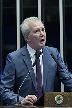 ![]() In a speech, to the Federal Senate rostrum during a solemn session of the National Congress in honor of RecordTV's 65th anniversary. Photo: Geraldo Magela/Agência Senado. | |