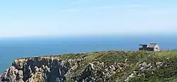 On the cliff top above the beach of Traeth Godir Coch is an old coastguard lookout post.[18] This was originally built in the 19th century (it is marked on the O.S. map of 1887) and was subsequently enlarged seawards in World War II by the addition of a brick wide-windowed extension. At the same time the main doorway was enlarged and edged with the same red brick. The site was accessed via a track and footpath from Pengarn, ½ mile to the south-east and from Alltycoed Farm upon whose land it lies. This was one of hundreds of wartime coastal lookouts which kept watch for enemy aircraft and submarines; the oil storage tanks at Milford Haven were only a short flight from here, and during the war they were heavily bombed.[19]