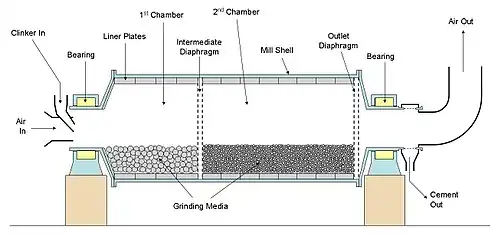 Approximately 65% of the total power for the production of cement is consumed in grinding.[5]