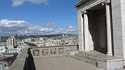 Located on a terrace of the cerro Panteón, the cemetery features a portico entrance, which is located directly across the street from the entrance to the Cementerio de Disidentes. This Greek temple-like gate was built in the Neo-classical style with fluted Doric columns. The portico contains a replica of the Pietà by Michelangelo.[1]