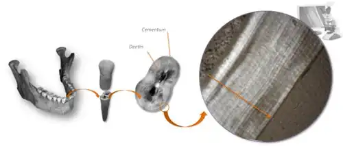 - ^ a b Colard, T.; Bertrand, B.; Naji, S.; Delannoy, Y.; Bécart, A. (2015). "Toward the adoption of cementochronology in forensic context". International Journal of Legal Medicine. 132 (4): 1117–1124. doi:10.1007/s00414-015-1172-8. PMID 25773917. S2CID 24517675.