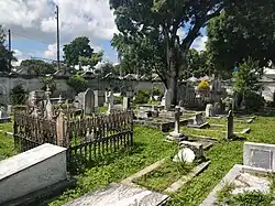 The cemetery has been listed as a heritage site in the state of Pernambuco since 1984. It is maintained by the Sociedade Gestora do Cemitério dos Ingleses, which was founded in 1991, consisting of British residents and members of families of people buried in the cemetery. Around 80 each paid a recommended monthly fee of R$120 (approx. US$25) in 2023, which covered two employees, water, and electricity. A few burials still take place there, for which a fee is paid. The cemetery receives no financial help from the Brazilian or British governments and, with limited resources, is not in a good condition.[1][8] Lacking resources, its web site is out of date.[5]
