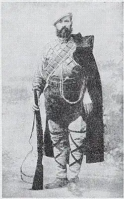 With the outbreak of the First Balkan War in 1912, he joined the Chetnik detachment of Vojislav Tankosić and participated in fighting in Merdare, destroying the Ottoman border stations.[2] In World War I he fought against the Austro-Hungarians in Belgrade, then was sent to his home region to monitor the IMRO.[2] In 1915, with the fall of Serbia, the Bulgarians attacked Tetovo, killing Marković's horse, but he survived and escaped into Albania.[2] He fought on the Macedonian front.[2] During this time he married in Bitola, then returned to fighting in the north.[2] When the war ended, he returned to his village, which was devastated, the houses having been burnt down by the Bulgarians.[2]