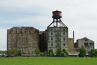 The Centennial Mills, originally known as the Crown Mills, is a complex of twelve buildings along the Willamette River in Portland, Oregon's Pearl District,[1] in the United States. The Portland Development Commission, later renamed Prosper Portland, acquired Centennial Mills in 2000. The buildings were slated for demolition, except for the flour and feed mill buildings.[2] Between summer 2015 and fall 2016, most of the buildings on the property were demolished.[3][4] In 2024, Prosper Portland sold the property to private investors.[5]