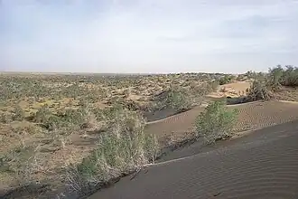 The Central Asian southern desert ecoregion (WWF ID: PA1312) is an arid but ecologically active region between the east coast of the Caspian Sea and steppes at the base of the mountains of central Asia. Most of Turkmenistan and eastern Uzbekistan is in this ecoregion. The winters are milder than in the cold desert to the north (the Central Asian northern desert ecoregion), and a large number of endemic species have adapted to living in the particular climate and soil of the region. As with sandy deserts in general, the region is notable for high numbers of endemic species of reptiles and insects.[1][2]
