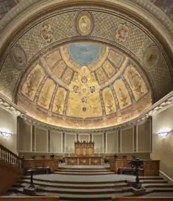 Francis W. Carpenter funded the chancel apse decoration, which was executed by Herman T. Schladermundt of New York. The First Century of Central Congregational Church (1952) describes the painted scenes: