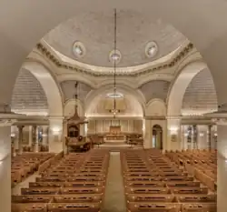 Before the construction of the present sanctuary, the church built Memorial Chapel, now known as Chapel Hall. The Chapel was given to the church by Mr. and Mrs. John W. Danielson and Miss Amelia Lockwood, in memory of Amos DeForest Lockwood and Amelia Fuller Lockwood. It was first used on Easter Sunday, April 17, 1892.[22]