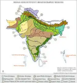The Central Highlands of India is a large geological structure and biogeographic region located between the Deccan plateau and the Indo-Gangetic plains consisting of number of mountain ranges, including Vindhya and Aravali ranges, and the Chota Nagpur and Malwa plateaus.[1] It is the single most important feature of Central India. It extends over three linguistic sub-regions of the Indo-Aryan language family and the languages chiefly spoken here are, from west to east, Marwari, Malwi, Bundeli, Bagheli, Chhattisgarhi and Maithili. The population is primarily Indo-Aryan along with a large population of Aboriginal tribes.