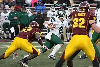 - ^ a b Mark Snyder (November 29, 2008). "Schmitt sets NCAA completion record: Eagles upset Chippewas in Genyk's last game at Eastern Michigan". Detroit Free Press. p. 8B – via Newspapers.com.