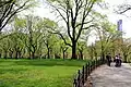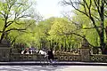 The Mall, designated the "Promenade" in Olmsted and Vaux's Greensward Plan of 1857, was called the "open air hall of reception" in the text that accompanied the plan in the competition. "A 'grand promenade' was 'an essential feature of a metropolitan park', the designers acknowledged, yet its formal symmetry— like all architecture in the park— must be rendered 'subservient' to the natural 'view as the ultimatum of interest.'"[9] Grading the Promenade and the Center Drive that swept along its western flank offering views over the Sheep Meadow[10] was done in 1858.[11]
