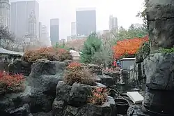 The main zoo was closed in late 1983,[91][92] though the children's zoo remained open.[93] Demolition continued through 1984, though construction on the new zoo did not begin until the following year.[48] The subsequent redesign was executed by Kevin Roche of Kevin Roche John Dinkeloo Associates. The facility's menagerie cages were replaced with three naturalistic habitats that blended with Central Park's scenery.[88][94] Four of the original buildings were preserved in the redesigned zoo, though the cramped outdoor cages were demolished. The central feature of the original zoo, the sea lion pool, was retained.[93][9]