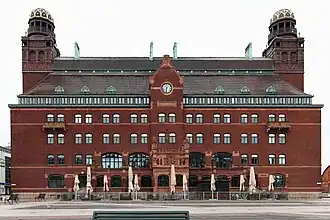 The Central Post Office Building, Malmö, Sweden, (Swedish: Centralposthuset) designed by Ferdinand Boberg and built between 1904 and 1906.[1] It is a building in the style of Romantic nationalism, popular in the years around 1900. Inspired by the Brick Gothic from the middle ages, common especially in the cities around the Baltic Sea. The unusually large cupolas of the two towers is a detail that caused some debate at the time.