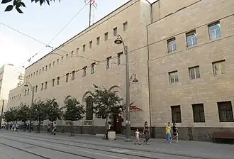 The building was built as General Post Office during the British Mandate, one of three government buildings in this area. Construction was between 1934 and 1938 to the design of the main architect of the public works department of the British Mandate, Austen Harrison and the Government architect Percy Harold Winter.[1] The total cost was £120,000[1] for the building to house the administrative and engineering staff of Palestine Post, Telegraph & Telephone, the Jerusalem central telephone exchange and the Jerusalem post office.[1] The opening ceremony was held on 18 June 1938, in the presence of the High Commissioner and hundreds of guests. The building is typical of the 'Mandatory' style.