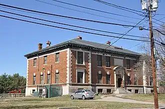 The Central Square Historic District is a historic district encompassing an area in Weymouth, Massachusetts, which was historically significant in the pre-factory period of shoe manufacturing. It is centered at the intersection of Middle and Broad Streets, extending on Middle Street from Maple to Charles Streets, and on Broad from just west of the main junction to Putnam Street. Most of the houses built in this area between 1850 and 1870 were built for workers in relatively small shoemaking operations, one of which still stands at the main intersection. Later additions to the district include the Jefferson School, a Masonic temple, and the Clapp Memorial Building, which originally housed a boys' club.[2]
