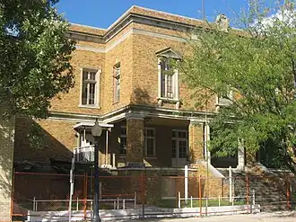 The Centralia Elks Lodge was a historic building located at 328 E. Broadway in Centralia, Illinois. The Classical Revival building was constructed between 1929 and 1931 for Centralia Lodge 493, the city's chapter of the Benevolent and Protective Order of Elks. The entrance to the building was flanked by Ionic columns. The second-story windows on the front facade were topped with limestone pediments and segmented arches; the windowsills feature decorative brackets. Limestone cornices top both stories of the building, and a cartouche bordered by scrolls sat on the roofline above the central front window.[2]