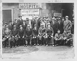 Under Contract 4 of the Dual Contracts, the BRT (later reorganized as the Brooklyn–Manhattan Transit Corporation or BMT) was to operate the Nassau Street Line.[24] The southern portion of the line remained incomplete for several years, and the BRT brought a $30 million suit against the city for not building the line before January 1, 1917.[25] Most of the BMT's Dual Contracts lines were completed by 1924, except for the Nassau Street Line.[24] BMT chairman Gerhard Dahl was persistent at requesting that the city build the line, saying in 1923 that the BMT was willing to operate the line as soon as the city completed it.[26] At the time, the BMT was planning to construct two stations on the Nassau Street Line: one at Fulton Street, where the BMT planned to place the northbound platform above the southbound platform due to the street's narrowness, and the other at the intersection at Broad and Wall Streets, where both platforms would be on the same level.[27] However, mayor John Hylan refused to act during his final two years in office.[24] BOT chairman John H. Delaney believed that the line was unnecessary because both of its planned stations would be extremely close to existing subway stations.[28] Meanwhile, the BMT claimed that the city's failure to complete the line was overburdening other BMT lines.[29] By January 1925, the BMT was asking its passengers to pressure Hylan into approving the remainder of the Nassau Street Line.[30] Work did not commence until after James Walker succeeded Hylan as mayor at the end of 1925.[24]