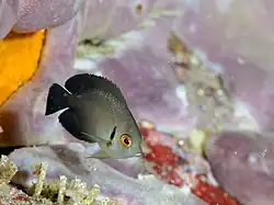 Centropyge vrolikii, known commonly as the pearlscale angelfish or half black angelfish, is a species of marine ray-finned fish, a marine angelfish belonging to the family Pomacanthidae. It is found in the Indo-Pacific.