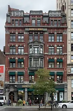 By the early 1990s, an observer called 33 East 17th Street an "eyesore".[22] Related Companies and the Carlyle Group leased the building in 1994, after fifteen years of vacancy.[23] and Related later took ownership of the building by 1995.[24] The facade was restored in 1994–1995 by Li/Saltzman Architects,[3] while Related Companies renovated the rest of the building to accommodate a four-story Barnes & Noble bookstore.[25] The bookstore, which opened by late 1995,[26] was one of several buildings in the Union Square area that were redeveloped by Related Companies.[25] Li/Saltzman's renovation received the Preservation Award for Restoration from the Municipal Art Society in 1996.[14][27]