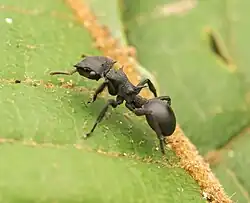 Cephalotes placidus is a species of arboreal ant of the genus Cephalotes, characterized by an odd shaped head, and the ability to "parachute" by steering their fall if they drop off of the tree they're on. Giving their name also as gliding ants.[1][2]
