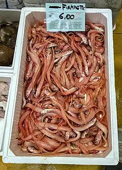 Tainia was the name by which the ancient Greeks called Cepola macrophthalma, and the oil was olive oil.[15] In modern times the species is of a lesser importance. In some countries (such as Italy and Spain) it is still consumed, but in others (such as Greece) it is generally discarded when caught by fishermen trying to catch more desirable species.[16] The fish is prized by British deep-sea anglers, and poaching by anglers is a major threat to the population at Lundy.[7]