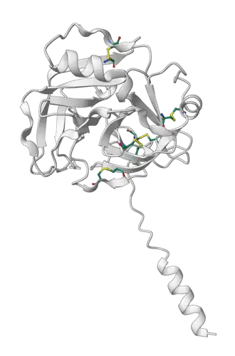 Cerastocytin, like most other serine proteases,[7] thrombin specifically, has three distinguishing features: the hydrophobic pocket, the positive surface and the catalytic triad. Additionally, the tertiary structure of cerastocytin is maintained by disulfide bridges similar to those formed in other serine proteases. This structural similarity results of cerastocytin's ability to clot platelets and hydrolyze fibrinogen at the concentration of 5 nM, closely mimics the activity of thrombin at 1nM.[8] Cerastocytin is made of 256 amino acids.