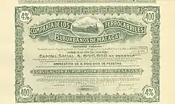 In 1908, the first line of the Ferrocarriles Suburbanos de Málaga opened; a metre-gauge rail network connecting Málaga to Vélez-Málaga. This line was later extended to Ventas de Zafarraya, along with lines to Coín and Fuengirola.[3] The lines closed in stages between 1960 and 1968. Part of the corridor to Fuengirola was rebuilt to 1668 mm Iberian gauge, with some sections placed underground including a re-routing of the line through Málaga Airport, branded as Cercanías Málaga, and opened in 1975.
