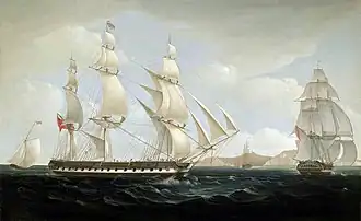 ![]() The East Indiaman Ceres in two positions off St Helena, William John Huggins (1781–1845)