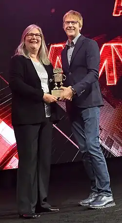 The International Game Developers Association awarded Cerny with the Lifetime Achievement Award at the Game Developers Choice Awards (IGDA) in 2004.[7][21] IGDA stated, "It's rare to find a 'jack-of-all-trades' who not only has the high-level vision for great game design but can act as the glue to adhere all the pieces together. His unusual but highly effective methodology has brought us some of the most entertaining games in history."[22] He was described as "a master collaborator". His Crash Bandicoot and Spyro the Dragon games have collectively sold more than 30 million units.[23]