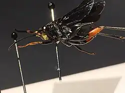 | A male specimen of Ceropales bipunctata, exhibiting the two white spots for which it is named. | |