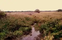![]() The Cerquilla River with a dilapidated bridge in the background, near the Windmill of the Aldehuela, in the municipality of Frumales | |