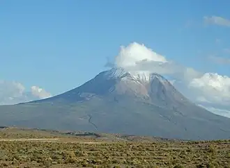 Cerro Cariquima is a 5,365 metres (17,602 ft) high volcano in the Andes.[1] It is a sacred mountain of the territory,[2] featuring a mountain sanctuary.[3]