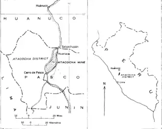 - ^ Johnson, Robert; Lewis, Richard; Abele C., Guillermo (1955). Geology and Ore Deposits of the Atacocha District Departamento de Pasco Peru, USGS Bulletin 975-E, Geologic Investigations in the American Republics. Washington: United States Government Printing Office. pp. 337–387.