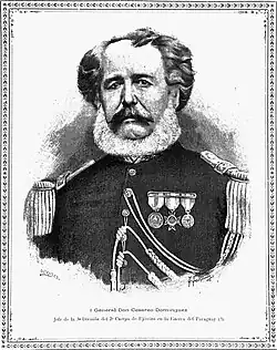 The following year he organized the Cordovan contingents that were to participate in the Paraguayan War. He marched to the frontlines and under the orders of Emilio Mitre, he had an outstanding performance in the battles of Paso de Patria, Itapirú, Estero Bellaco, Tuyutí, Yataytí Corá, Boquerón and Curupaytí.[2][5]