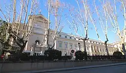 Named Academia Preparatoria, Colegio de Preparación, Colegio General Militar or simply Academia-Colegio, the school was first located at Puerta Llana, then moving to two adjacent buildings at Bajada del Pozo Amargo.[40] Its exact opening year is unclear; some of its later notes claimed it had operated since 1875,[41] though first press adverts targeting new candidates can be traced back to 1877.[42] Invariably featuring Sanz as the director, the school kept recruiting at least until the early 20th century. It is not clear whether lack of press adverts in mid-1890s is indicative of the school temporarily closing or quite to the contrary, acquiring a prestigious status which did not require commercial marketing. Though press adverts did not exploit the Carlist wartime record of its director, parents of similar political leaning used to favor Sanz's college over similar schools; that was the case of Ignacio Hidalgo de Cisneros, the future commander of Republican Air Force, who as a boy was sent from his native Vitoria to Toledo.[43]
