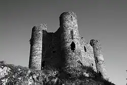 Built in the 13th century by the constables of Auvergne, it belonged to the bishops of Clermont. During the Hundred Years War it was seized for the English by Bernard de Garlan. For seven years, he sowed terror throughout the region, pillaging and holding to ransom. To avoid troubles from any Garlan successors, the inhabitants of Saint-Flour burned down the castle in 1405. Monseigneur De la Tour, owner of the castle, was very upset with this gesture, and obliged the Sanflorains to rebuild it on the original plan. It was taken by Huguenots in 1575. The towers were used as jails by the bishops of Clermont.[2]