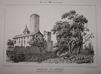The earliest member of the Curton family documented in official texts is Raimond de Curton appearing in the 11th century,[2] appearing as a Lord from the beginning of the 12th century. From the end of the 12th century, Regin de Curton made ties with the English Royal Family, signing a treaty in London.[3] In the 13th century, the Curton Castle and its Lord, Amanieu de Curton appear in the records.[4]