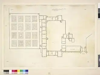 The château of Folembray was similar in design to the Château de Villers-Cotterêts.[1] It had a very elongated courtyard as well, lined with plain buildings and rectangular pavilions.[1] Today, the palace can only be admired from engravings, such as those made by Jacques I Androuet du Cerceau or the depiction of the château on the fresco maps in the Galerie des Cerfs of the Palace of Fontainebleau.