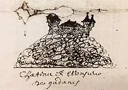 Fantillon's brother Jean-Paul de Sales, a Catholic, inherited the barony. The de Sales received a considerable expanse of land, consisting chiefly of immense forests covering the Pyrenees, in the barony of Gudanes, and were rewarded with a Marquisate de Gudanes. Records from 1671 describe the castle on the site as ruins.[6]