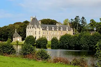 The Château de Kerduel, known as Kastell Kerduel in Breton, is a castle off the coast of northern Brittany, in the commune of Pleumeur-Bodou and the wider Canton of Tréguier. The castle and chapel are situated next to a small stream and lake, and the castle grounds have a large forest surrounding the property. The castle used to have fortified walls, but like many castles, they were removed over time.