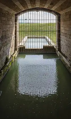 The walls of the well contains several large windows arranged regularly. It was possible to draw water from the well to every floor, and there is evidence of wear due to the ropes in several locations, but especially on the third floor.