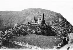 The first mention of the castle in documentation was in the year 1213, in a document of allegiance to the Church of Rome and the King of Aragon, as among the fortifications belonging to Raymond-Roger, Count of Foix. The Lords of Miglos resided in the castle. After the Siege of Montségur in 1244, Arnaud de Miglos was convicted of heresy and imprisoned at Carcassonne. Gaston I, Count of Foix gave the castle and valley to Bernard de Son (or Usson) to punish the Miglos family for its support of the Cathar cause, though the Miglos family regained some property in the area.[3]