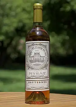 Château de Myrat or simply Château Myrat, is a wine estate belonging to the Sauternes appellation in Gironde, in the region of Graves. The estate is located in the commune of Barsac and produces a sweet white wine (Sauternes) ranked as a Grand Cru of Second Growth (Deuxième Cru) class in the original Bordeaux Wine Official Classification of 1855.