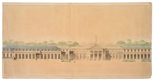 After the French Revolution, the château de Neuilly belonged to Radix de Sainte-Foy, who sold it early in 1792 to Madame de Montesson. Under the French Consulate, she sold it to the businessmen Delannoy and Vandenberghe who rented it as a secondary residence to Talleyrand (who held magnificent fêtes there) before selling it to Murat at the start of 1804. Murat also acquired the château de Villiers and reunited the two estates, carrying out important works and expansions (notably adding two wings to the main château and holding sumptuous fêtes there, including one on the occasion of Napoleon I's coronation as king of Italy in 1805). Murat became king of Naples (1808), and all his goods reverted to being Imperial crown lands. Princess Pauline Borghèse, Napoleon's sister, thus received the property as a "dotation" and also held great fêtes there.[2] In 1814, the estate reverted to the restored Bourbon crown.[3]