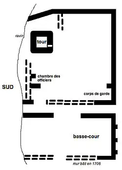 The castle was primarily military and defensive, the top of the keep serving as surveillance post able to communicate with other watch towers in the valley by fire signals. It was also a prison and, in the 17th century, became a customs post. After the French Revolution, it lost its military function.[4]