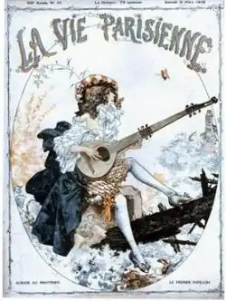 Hérouard often worked with fairy tale characters and was also a pioneer in the comics format.[1] He submitted work to La Semaine de Suzette before being approached by Charles Saglio, who had just purchased La Vie Parisienne, to become an illustrator for the magazine. At first he resisted, saying he didn't think he was skilled enough. Two years later, Hérouard's first illustration for La Vie Parisienne was published on 9 November 1907. The cover illustrations for the magazine were divided among several illustrators, with Hérouard contributing most frequently between 1916 through 1930. He continued his work with the magazine until 1952. He often created illustrations for books such as Dangerous Liaisons in 1945. For Pierrot, he drew Gil Blas de Santillane (1949), Tambour Battant (1950) and Le Capitaine Eclair (1951). Under the pseudonym of Herric, he also created erotic and sadomasochistic illustrations for various books including the Kama Sutra. He died on 2 June 1961 in Paris.