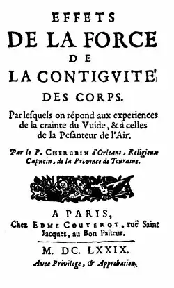 - Effets de la force de la contiguité des corps, par lesquels on répond aux experiences de la crainte du vuide, et à celles de la pesanteur de l'air (in French). Paris: Edme Couterot (1.). 1679.