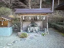 Water has played a large role in Japanese sprituality since pre-historic times, most notably in the form of misogi done at a spring, stream or seashore an based in the legend of the purification of Izanagi,[2][6] and the similar buddhist practice of kori among others.[6] Temizu delevoped as an abbriviation of Misogi,[4] altough misogi was considered the ideal at least in the 1960's,[3] and worshippers at the Inner Shrine at Ise still use this traditional way of ablution.[7][3]