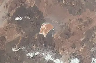Laguna Colorada and Ch'iqu (upper left) as seen from the ISS (north is to the upper left part of this image) | |