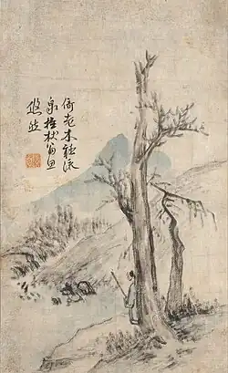 He was known to have traveled in Japan and was known to Zheng Zhilong's family; painting an image of Zheng's wife and their son Koxinga. The original returned to Korea with Ch'oe, but a copy was kept with the family and was later emulated by Pak Chega.[3]